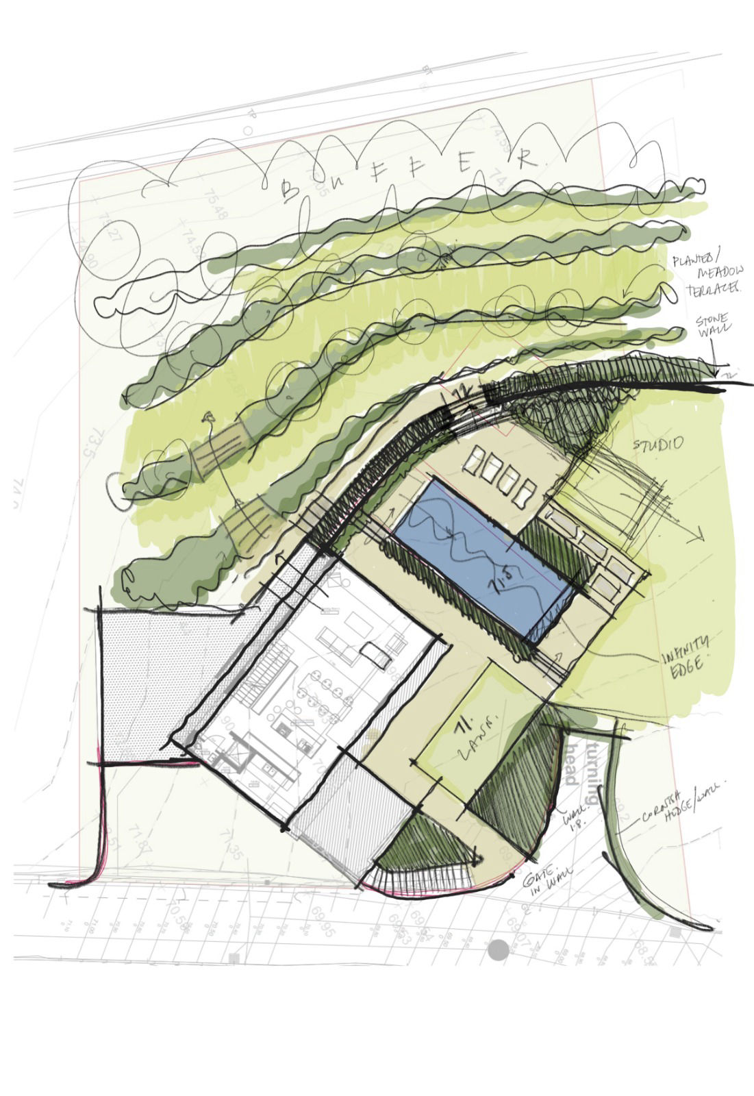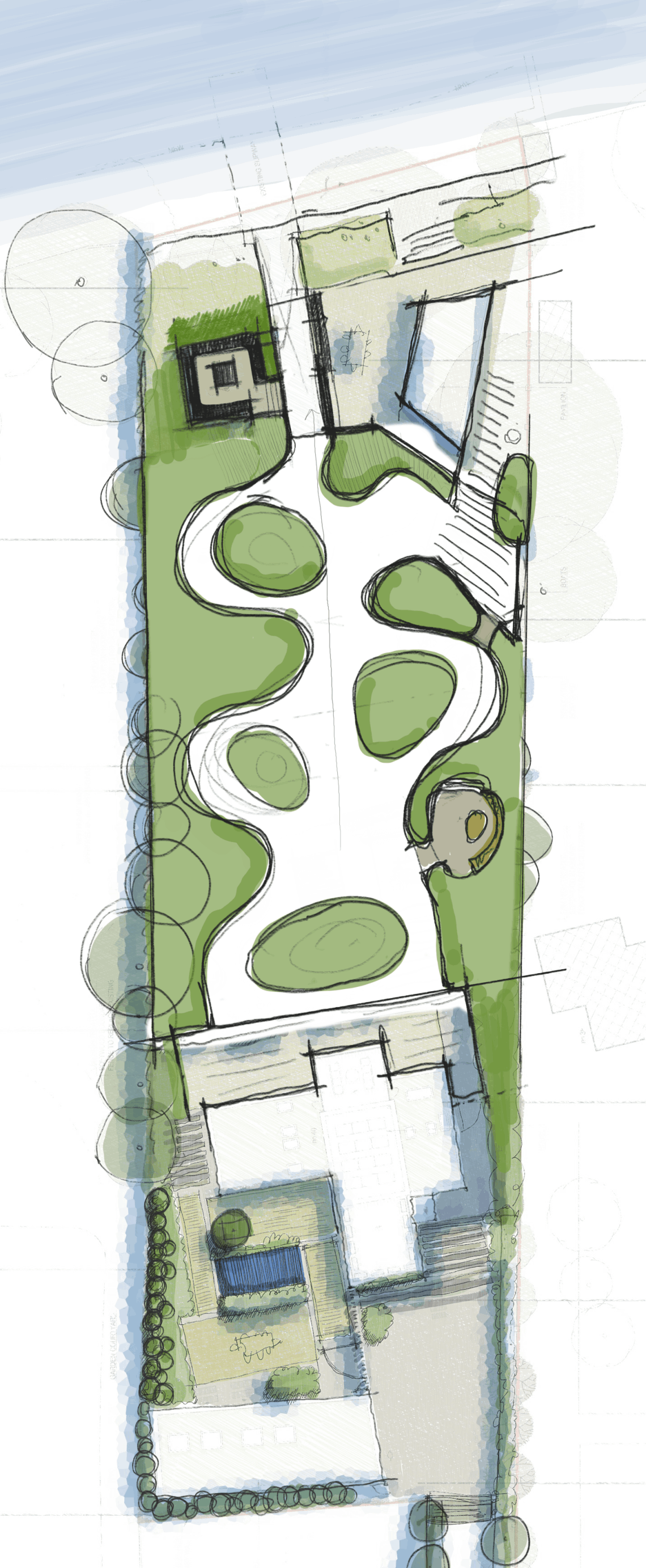 A rough line drawing, sketched at a meeting is often enough for clients to understand the idea in broad terms. Sketching is used both to convey small details, such as a step, edge or water feature or the overall general arrangement.